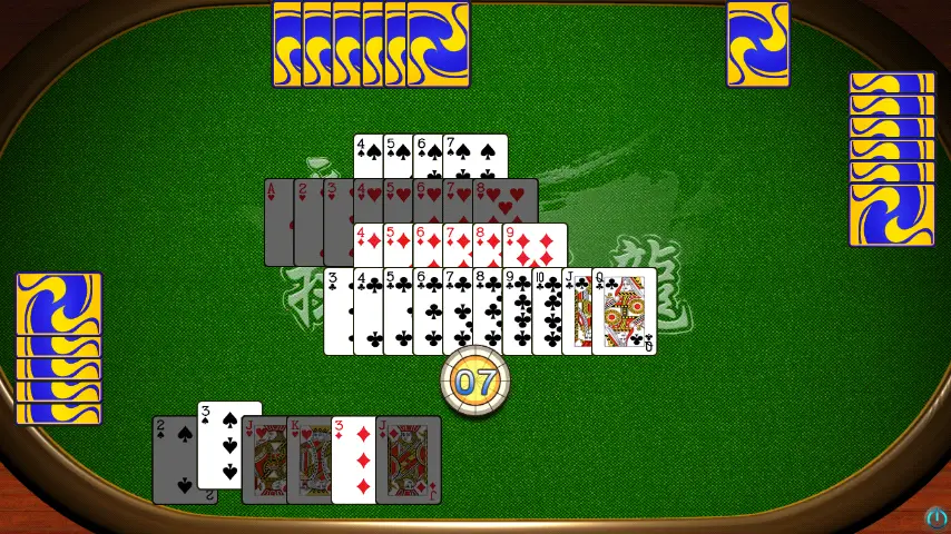 排七以四种花色的7点为核心,牌局从梅花七、方片七、红桃七、黑桃七向上下延伸: